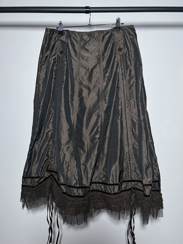Jupe longue marron dentelle.