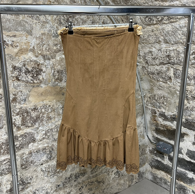 Nubuck bustier mini dress. Stretchy. Ruffles.