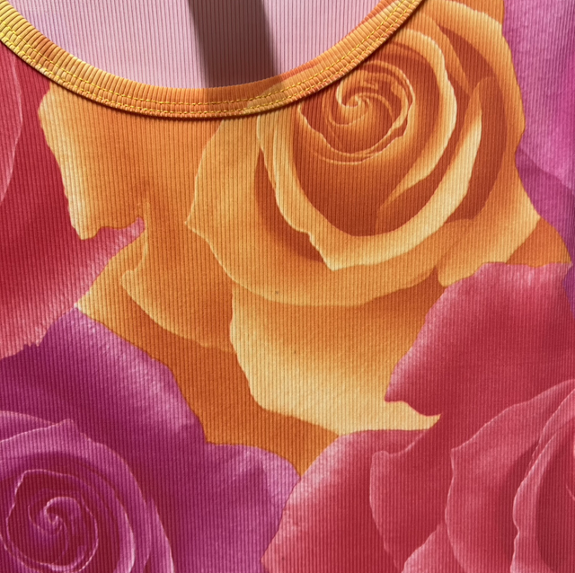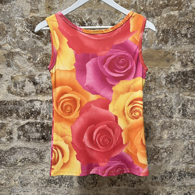 210 H62 P41 Débardeur fleurie rose jaune orange 22€