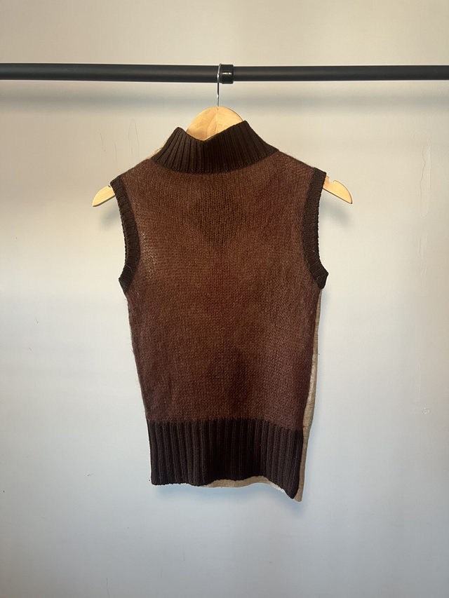 Sleeveless sweater. Wool. Checkered with traces of paint.