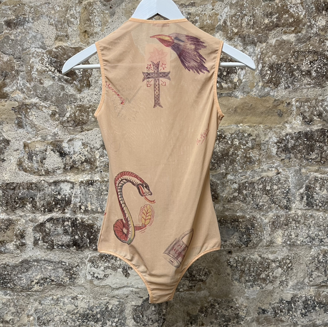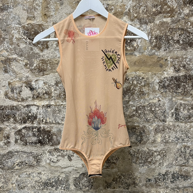 211 Hauteur 132 P33 Hanches 32 justaucorps transparent orange pastel Fornarina 30€