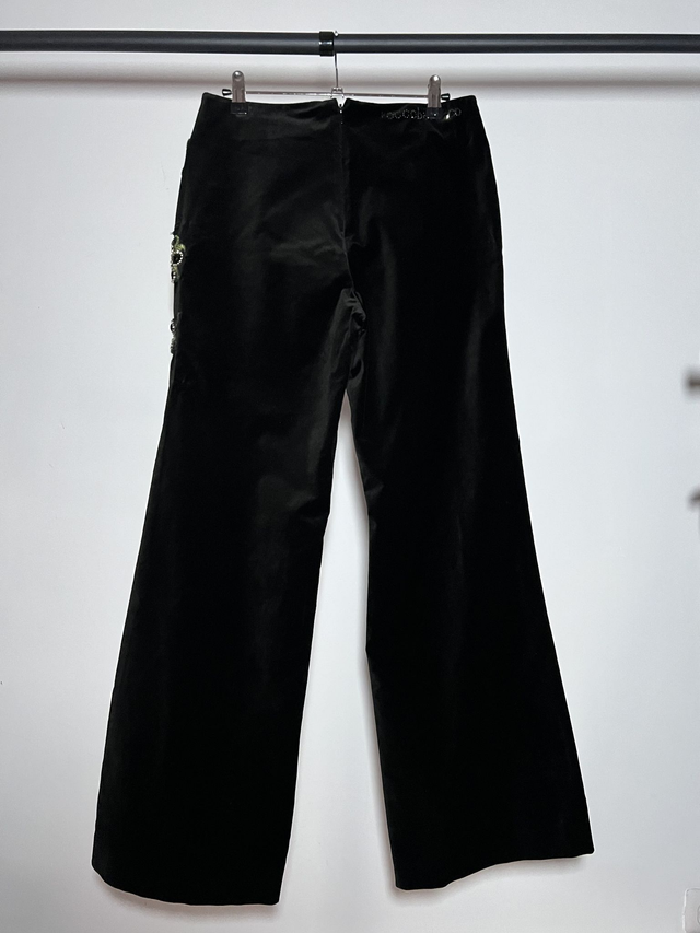 Pantalon velours noir broderie fleurs perles.