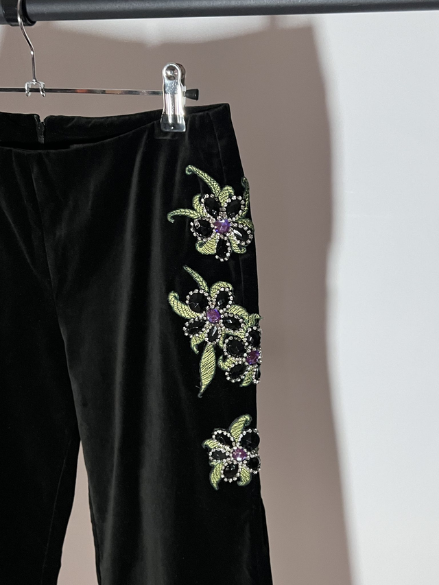 Velvet pants. Embroidered flowers.